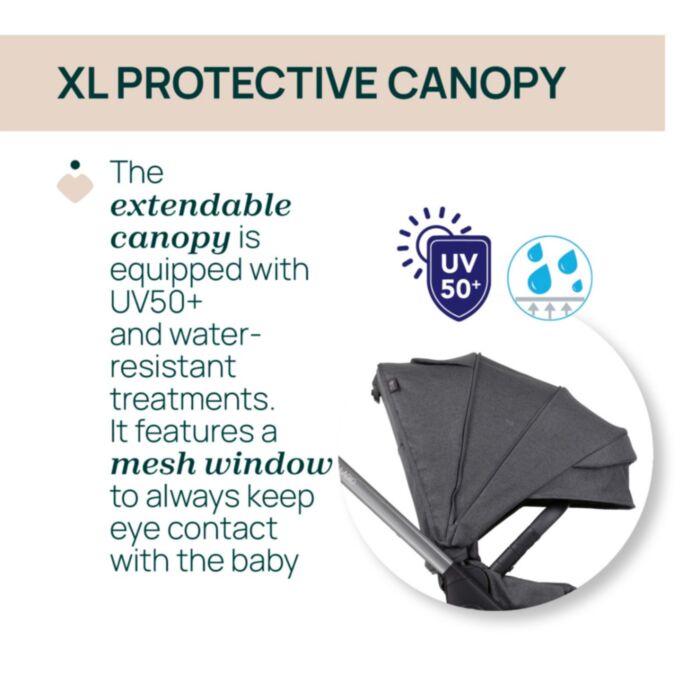 - Εγγυημένη άνεση: το αναπαυτικό κάθισμα και η προστατευτική κουκούλα προσφέρουν στο παιδί ασφάλεια και χαλάρωση.