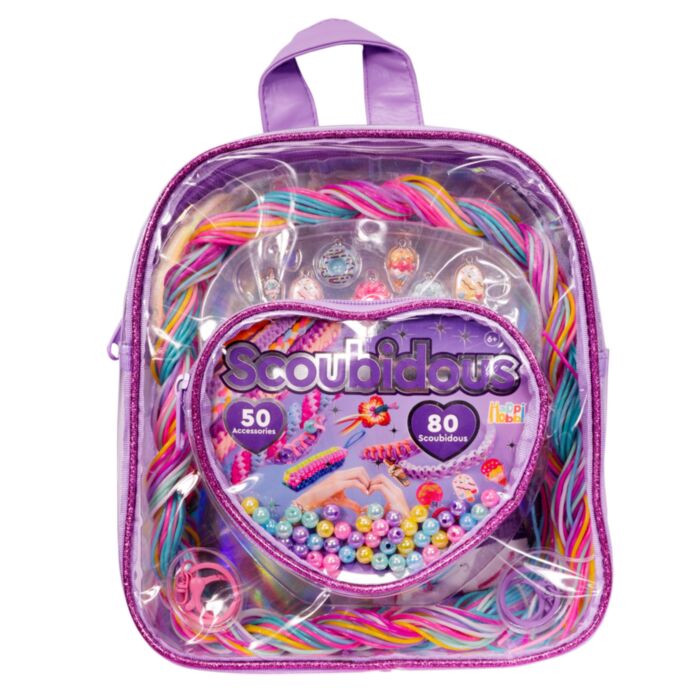 Σακίδιο πλάτης με 80 πολύχρωμα Scoubidous strings, 8 μοδάτα αξεσουάρ, 40 πολύχρωμες χάντρες και 2 μπρελόκ. Δημιουργήστε μοναδικά και πολύχρωμα βραχιολάκια, δαχτυλίδια, μπρελόκ και άλλα αξεσουάρ και κάνετέ τα ακόμα πιο εντυπωσιακά προσθέτοντας πολύχρωμα αξεσουάρ σε μοναδικά σχέδια. Ιδανικό για παιδιά που αγαπούν τις χειροτεχνίες και θέλουν να εκφράσουν τη δημιουργικότητά τους. Διατίθεται σε μοδάτο σακίδιο πλάτης το οποίο διευκολύνει το παιδί να πάρει μαζί του όλα τα Scoubidous και τα αξεσουάρ του και να φτιάξει οπουδήποτε φανταστικά βραχιολάκια παρέα με τους φίλους του. Μπορεί επίσης να χρησιμοποιηθεί για οτιδήποτε άλλο θέλει το παιδί στην καθημερινότητά του και να είναι πάντα στυλάτο.