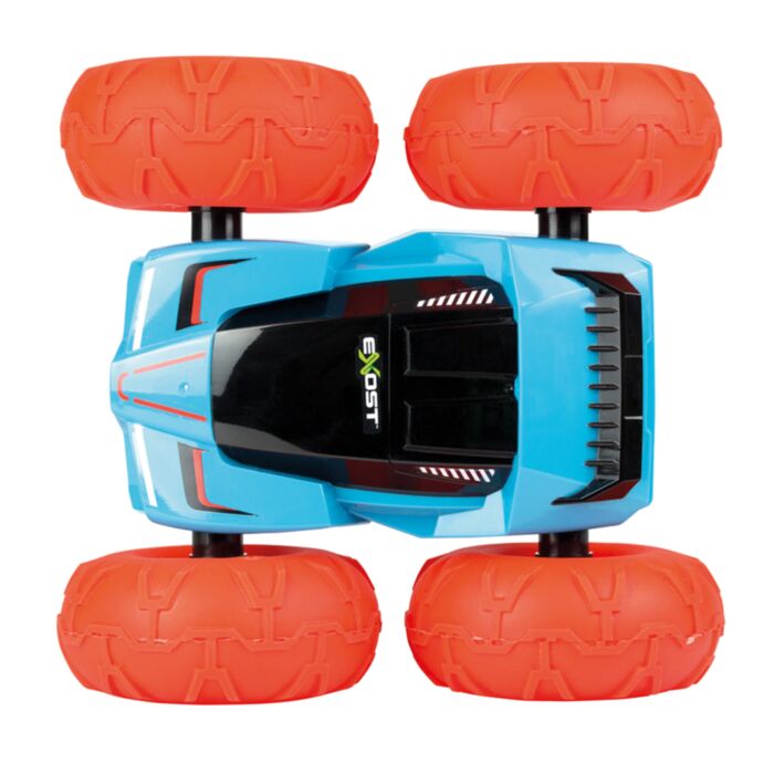Experience driving from every angle with the Exost Turbo Slide! The Exost Turbo Slide features 4 specially designed wheels that rotate from vertical to horizontal, allowing it to move sideways to overcome obstacles with ease. Thanks to the rear spoiler, it can balance and perform impressive stunts on the 2 rear wheels! Control is stable and reliable up to 25 meters, thanks to 2.4Ghz technology.